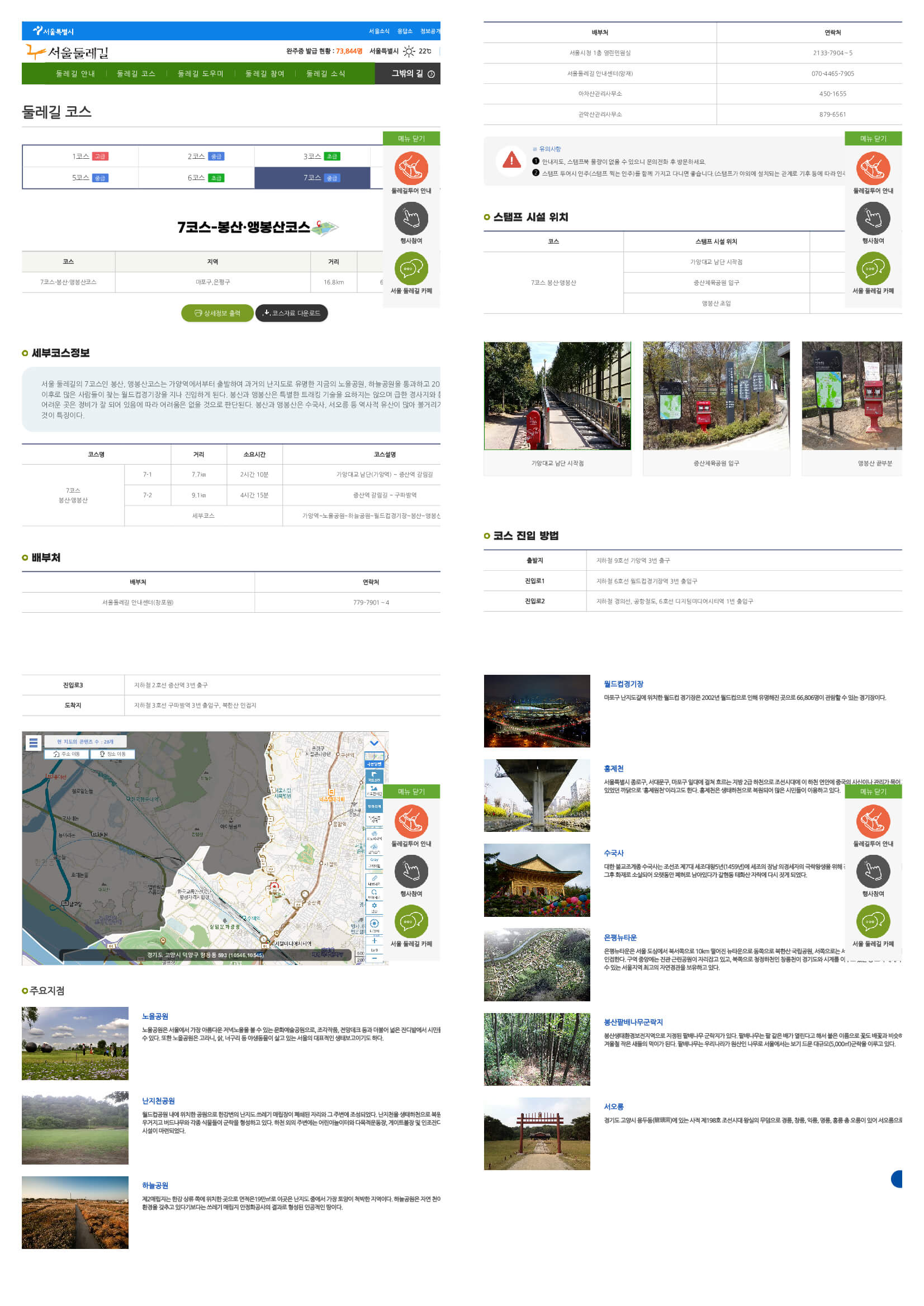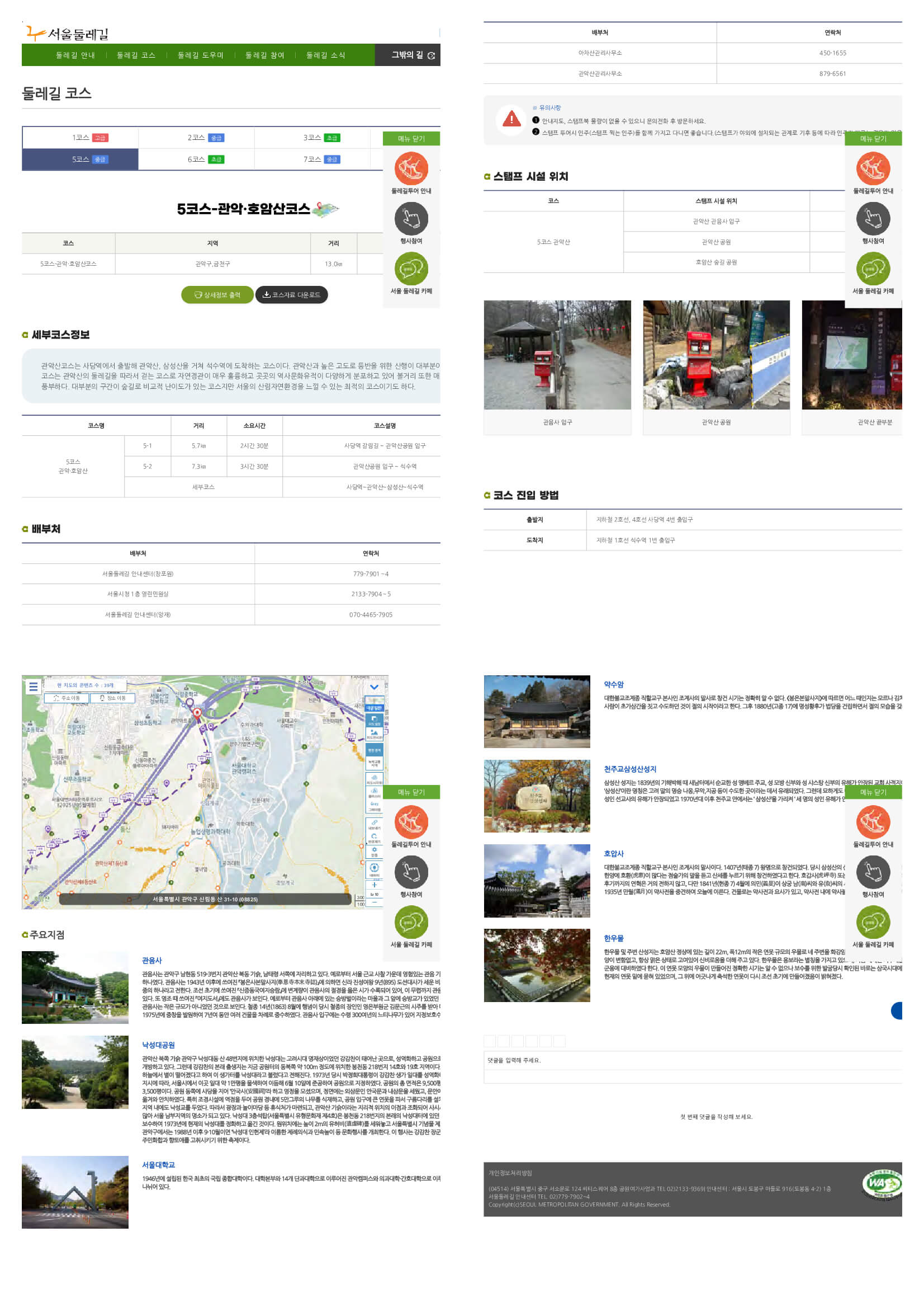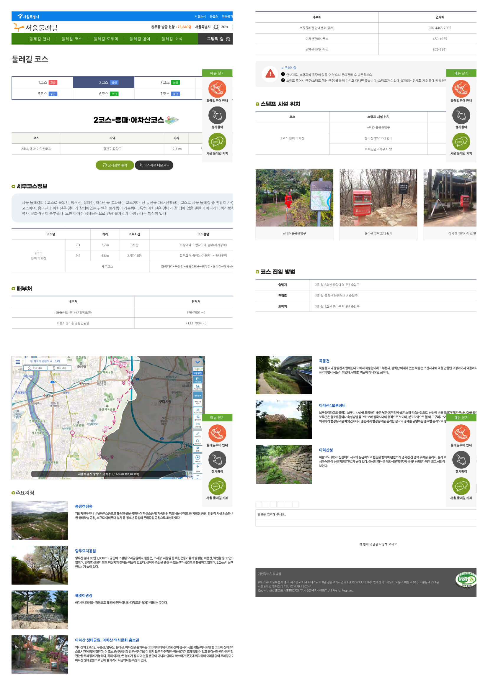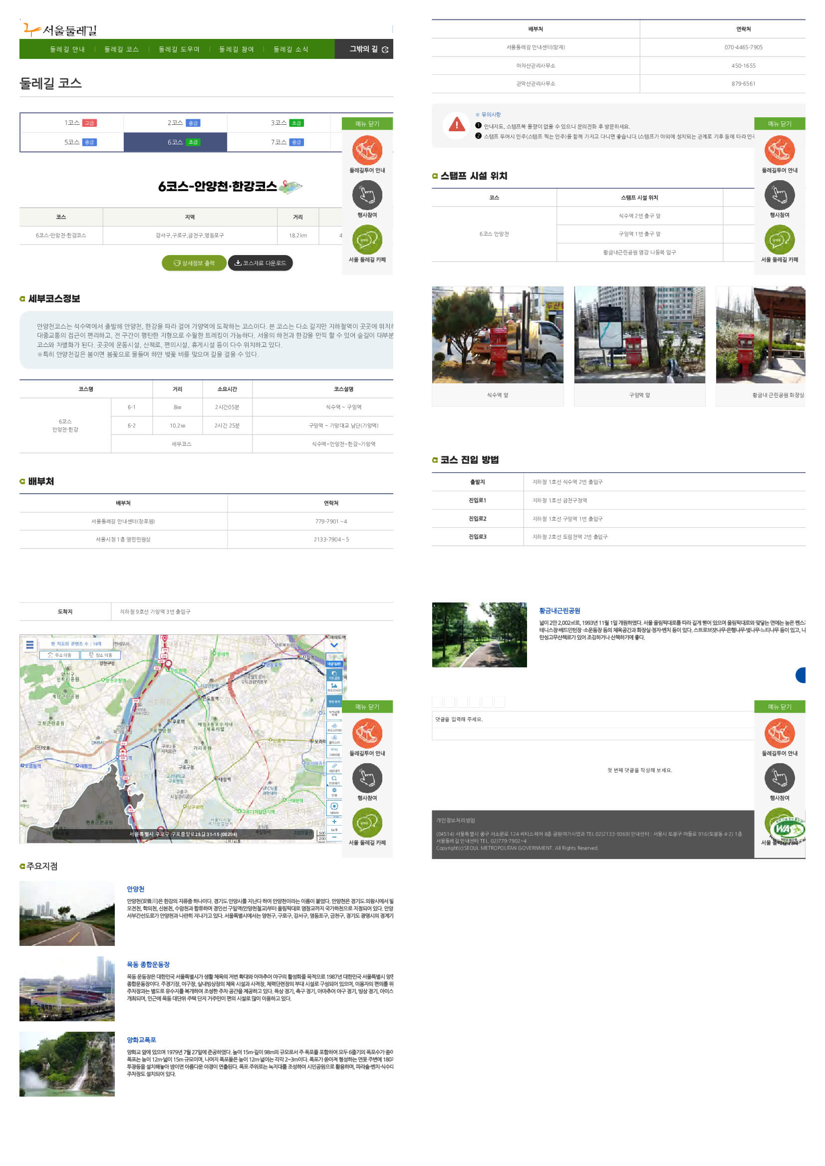 기존 코스별 세부정보, 스탬프북과 안내지도 배부처, 스탬프 설치위치, 진입방법, 주요 지점 등의 상세내용은 서울둘레길 누리집이나 아래 표에서 클릭하시면 바로 확인하실 수 있습니다.