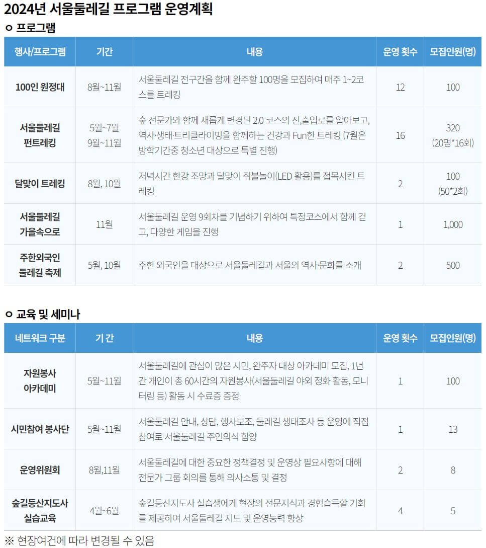 상기 프로그램은 서울둘레길 누리집에 공지될 예정이며, 예약은 👉서울시 공공서비스예약을 통해 할 수 있습니다.