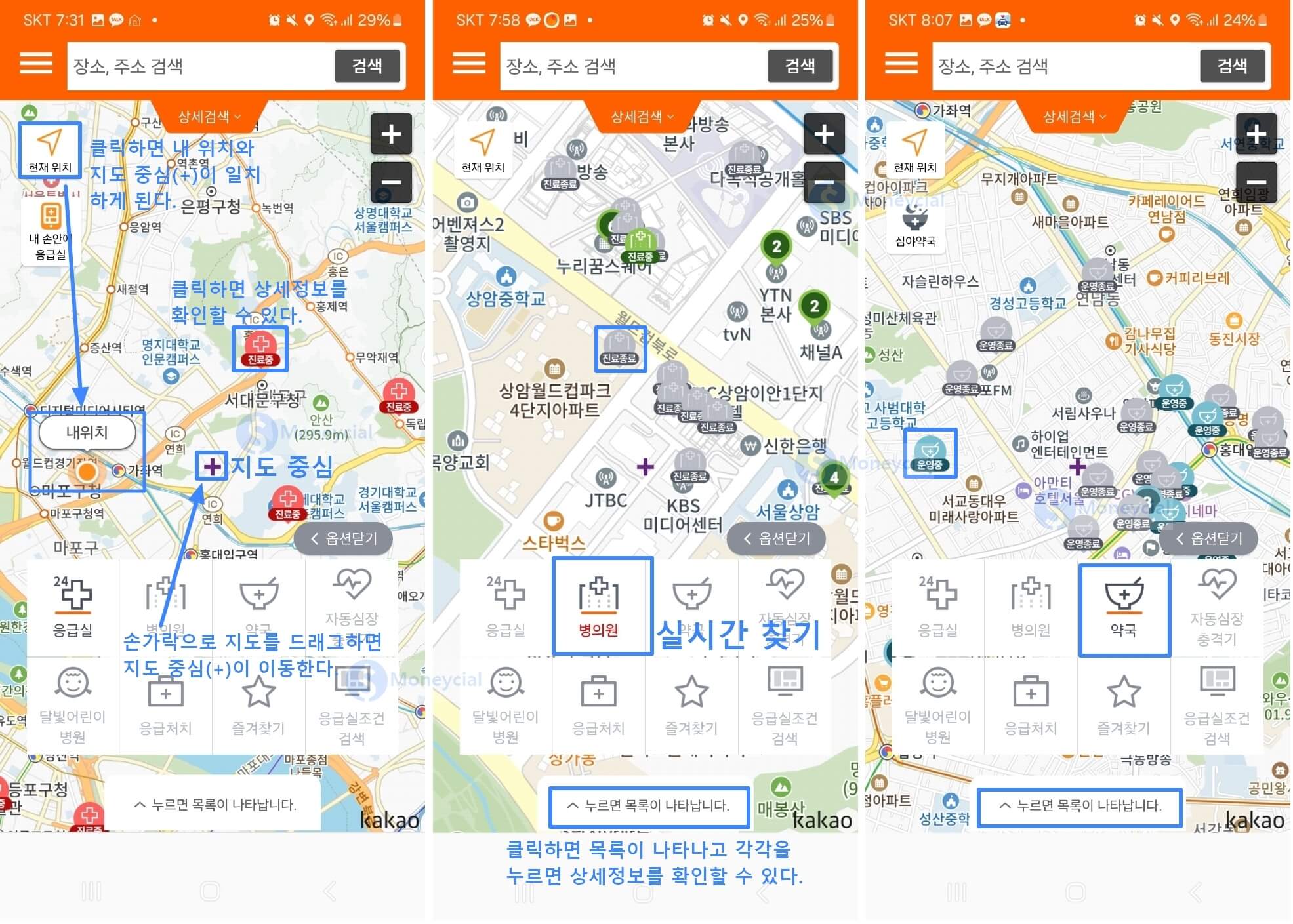 ① 실시간 영업 중 병원약국 찾기